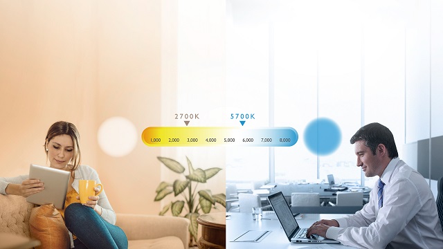 通過(guò)旋轉(zhuǎn)WiT的飛梭旋鈕,用戶可以手動(dòng)調(diào)節(jié)燈光亮度和冷、暖色溫。開(kāi)燈的情況下順時(shí)針可以提高亮度,逆時(shí)針則會(huì)降低亮度。此時(shí)按一下飛梭旋鈕可切換到色溫調(diào)節(jié)模式:順時(shí)針旋轉(zhuǎn)可以提高色溫(光線偏白色),逆時(shí)針旋轉(zhuǎn)可以降低色溫(光線偏黃色),色溫調(diào)整范圍為2700K~5700K。